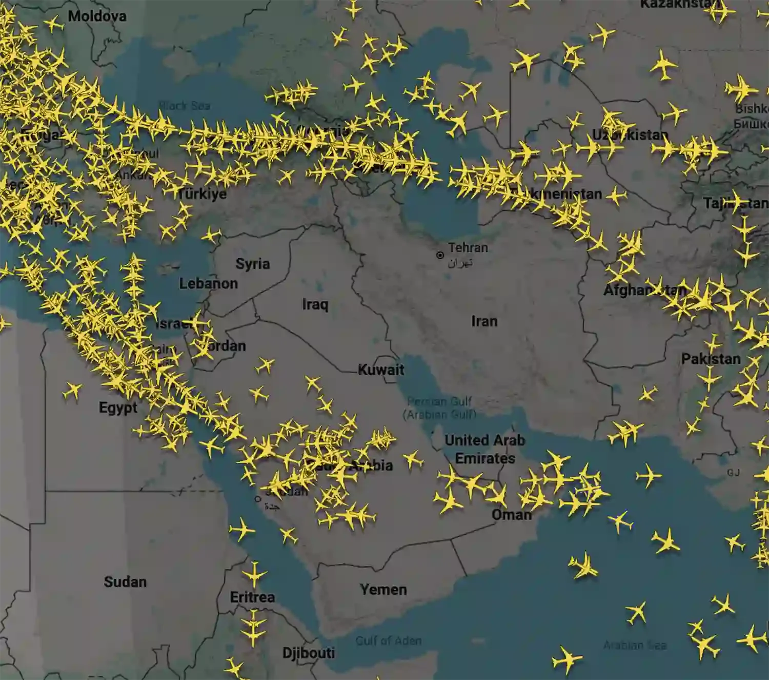 Store deler av luftrommet over Midtøsten er midlertidig stengt.